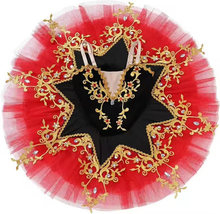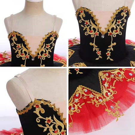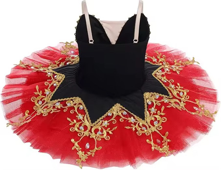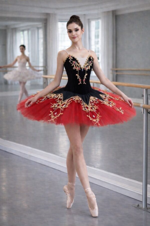 🩰 Балетната пачка „Carmen Elegance“ е създадена за девойки, които искат да се откроят на сцената със стил, сила и изящество. Вдъхновена от класическия балет и драматичната елегантност, тя съчетава наситено червено и черно с богата златна бродерия.